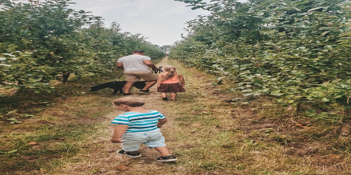 ↬ Honden zijn toegestaan. Let wel op, er liggen op een gegeven moment ook (rotte) appels op de grond