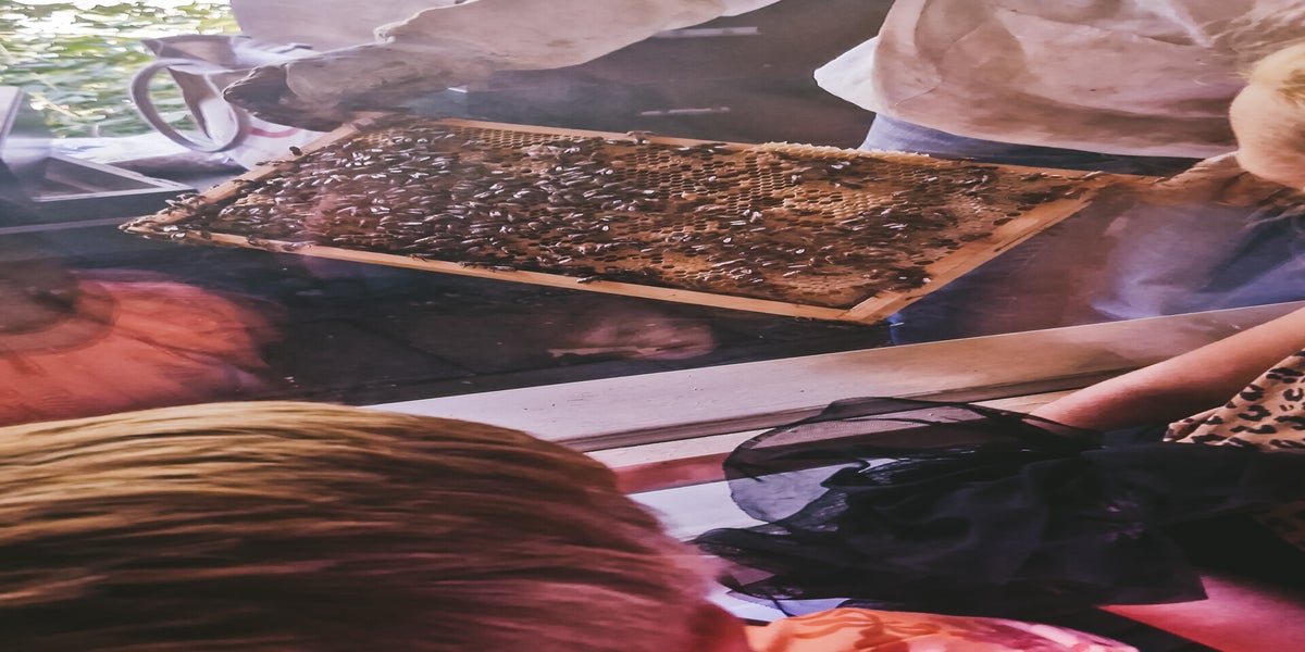 De kinderen (en wij) kregen eerst wat informatie. Daarna deed de imker zijn pak aan en maakte een bepaalde rook. Dit rook zou de bijen rustig maken. Wij konden dit vanachter een glas bekijken en hoefde daarom geen pak aan. Heel interessant om eens te zien!