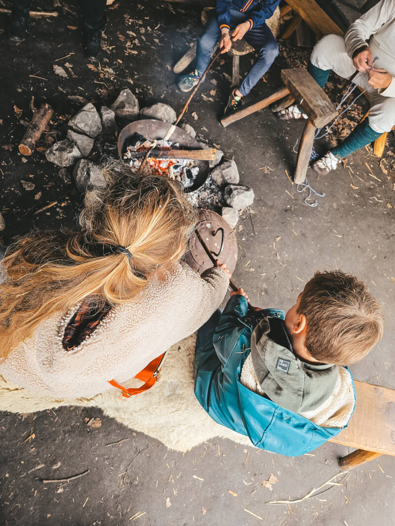 - Laat je kinderen niet onbegeleid over het terrein lopen. Dit staat overigens ook in de 'dorpsregels' als je het marktplein opkomt. Er zijn vuurtjes en open water. Dit is niet altijd afgeschermd. Tijdens ons bezoek waren er bij de haardjes wel 'bewoners', maar bij het water niet.