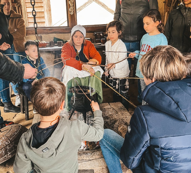 - Rondleiding volgen. Elke dag is er een rondleiding. Op het marktplein staat een bord waarop de tijd van deze rondleiding staat vermeld. Samen met een 'bewoner' loop je langs de verschillende periodes uit de geschiedenis.