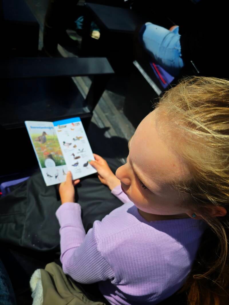 Aan boord werd er veel verteld over het landschap, de planten en de vogels die er leven. Achteraf zijn we heel blij dat we toch met de excursie zijn meegegaan want uit de verte zagen zij al welke vogels het waren en kregen we er allerlei informatie over, iets wat we zelf niet of veel minder snel zouden ontdekken. De kinderen hebben ook allerlei vragen gesteld en daar werd heel leuk op in gegaan. Ze kregen een kaart en boekje om zelf vogels mee te spotten.