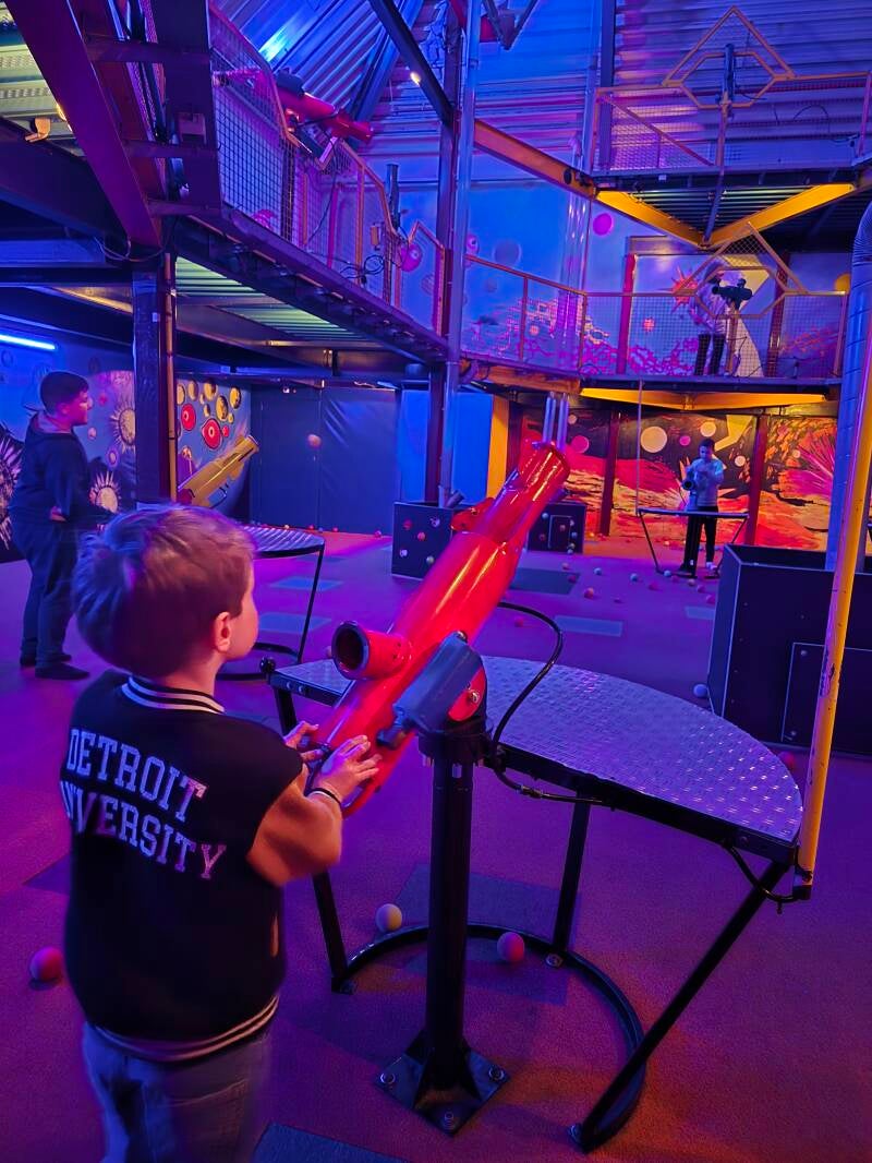 Spoiler: ze hebben een ontzettend leuke dag gehad! Wat een leuke plek! Wat dit speelparadijs extra leuk maakt wat mij betreft zijn de attracties. Een draaimolen, botsauto's, interactieve vloer, lasergamen, kanonschieten, etc. Naast nog een klim- en glijgedeelte wat altijd leuk is! Attracties gaan wisselend open en kunnen ook op verzoek open gaan. Ze hebben hier ruim 4 uur gespeeld!